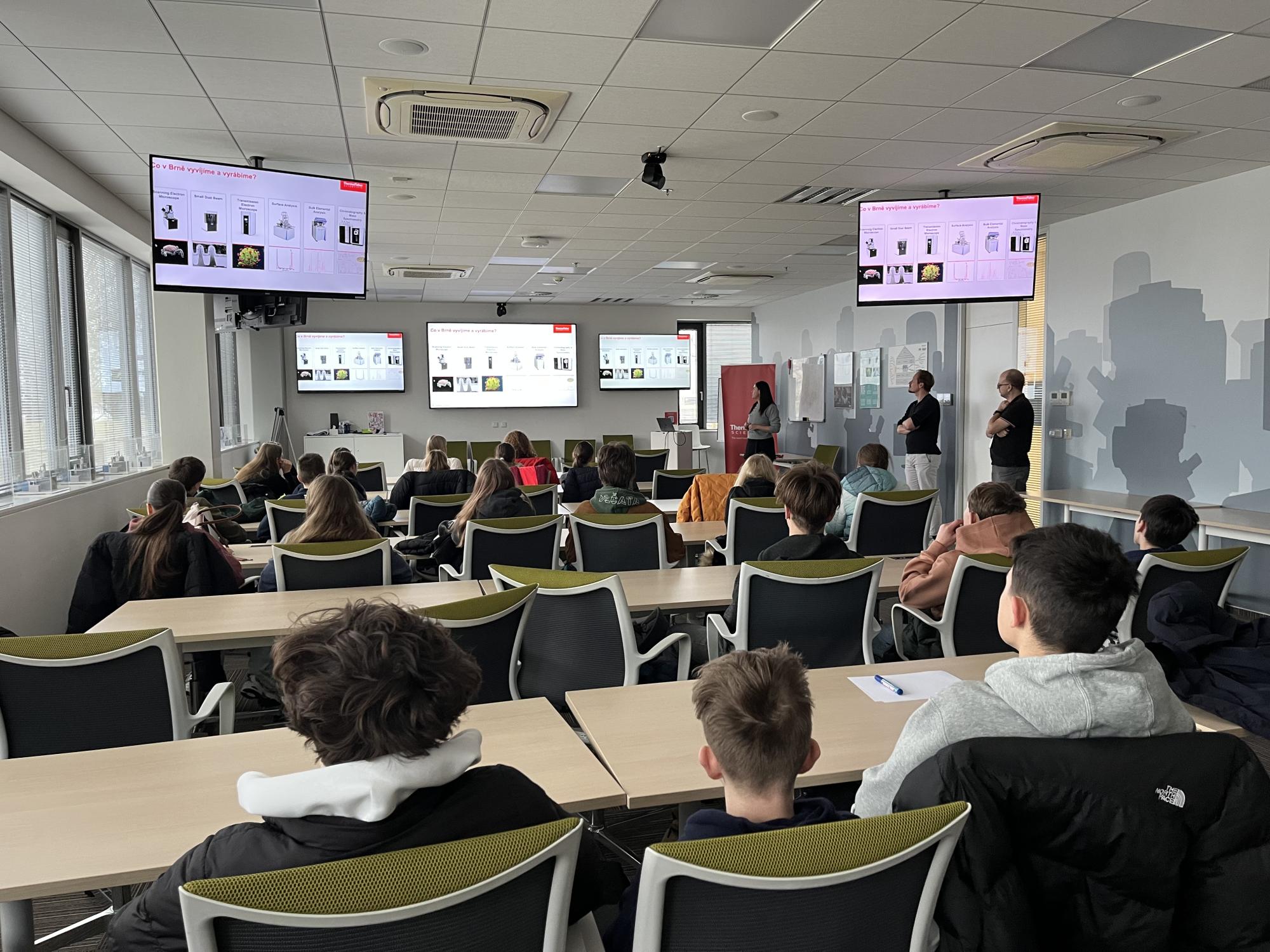 Třída 2. A se v rámci projektu Future Shapers zúčastnila v prvním lednovém týdnu exkurze v Thermo Fisher Scientific v Brně. Žáci prožili autentický pohled do high-tech výroby elektronových mikroskopů a dozvěděli se o budoucnosti vědy a technologií. Studenti se prošli čistými prostory, kde je méně prachu než v operační sále, a oblékli se zde jako skuteční vědci.